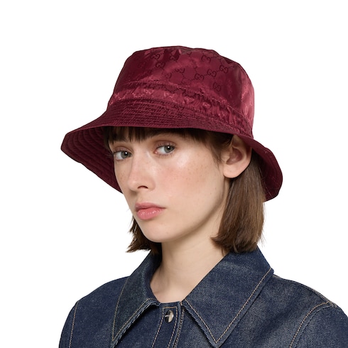 Im Rahmen der Pre-Fall 2025 Kollektion wird eine große Auswahl an textilen Accessoires von Haarreifen bis hin zu wendbaren Fischerhüten präsentiert. Dieser Fischerhut aus GG Nylon verfügt über eine Wendeseite aus ungemustertem Nylon und ist darüber hinaus mit einer Gucci Stickerei versehen. Das faltbare Design lässt sich vielseitig kombinieren.