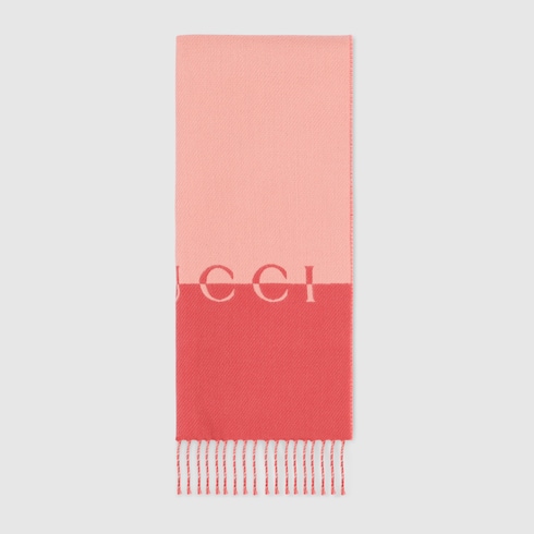 Die Cruise 2026 Kollektion für Damen präsentiert Accessoires aus weichen Stoffen, die symbolträchtige Motive auf neue Art und Weise in Szene setzen. Dieser Schal aus Wolle und Kaschmir wird von einem Jacquardmotiv mit Gucci Logo geziert.