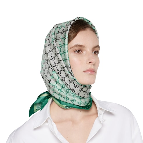 Dieses Vierecktuch ist Teil des 90 x 90 Projekts und präsentiert das GG Motiv von Gucci in einem Artwork des Illustrators Gio Pastori, der für seine beeindruckenden Kreationen aus Papier bekannt ist.