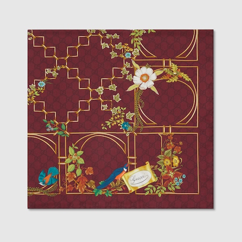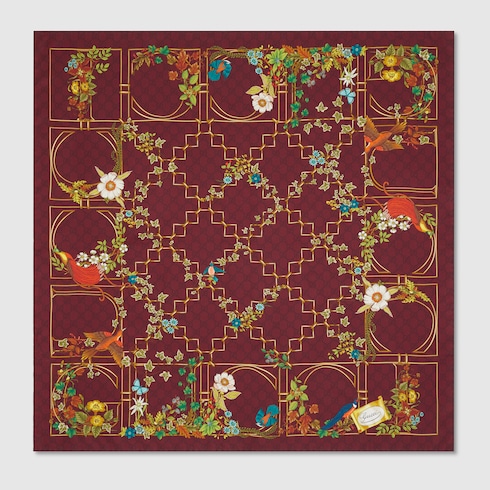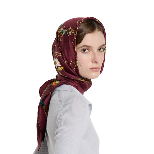 Der historische Flora-Print wird im Rahmen der Cruise 2025 Kollektion neu interpretiert. So erscheinen florale Muster auf einer Auswahl an weichen Accessoires und Modellen aus Seide, deren zarte Pastelltöne das romantische Flair der Designs unterstreichen. Dieses Seidentuch erhält durch den durchgehenden GG Gucci Blumen-Print einen besonderen Akzent.