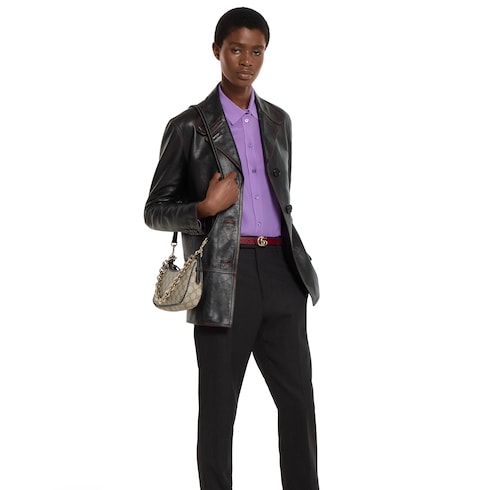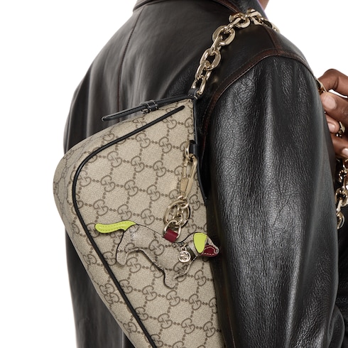 In der Herbst Winter 2025 Kollektion, die GG Emblem Kollektion eröffnet einen neuen Blick auf die Geschichte des Hauses, die seit jeher von Eleganz und Handwerkskunst geprägt ist. Komplettiert wird dieses Modell von einem Kettenschulterriemen und einem zusätzlichen verstellbaren Riemen aus Leder.