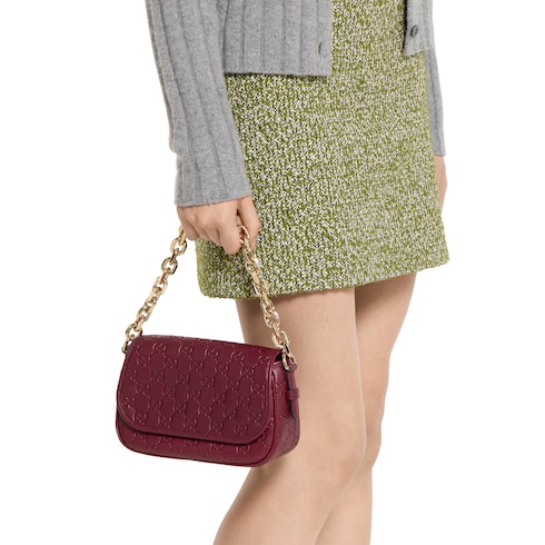 In der Herbst Winter 2025 Kollektion, die GG Emblem Kollektion eröffnet einen neuen Blick auf die Geschichte des Hauses, die seit jeher von Eleganz und Handwerkskunst geprägt ist. Komplettiert wird dieses Modell von einem Kettenschulterriemen und einem zusätzlichen verstellbaren Riemen aus Leder.