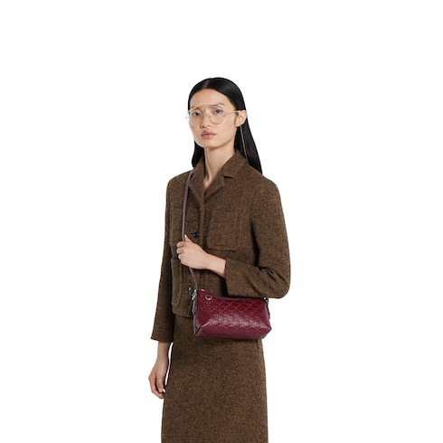 In der Herbst Winter 2025 Kollektion, die GG Emblem Kollektion eröffnet einen neuen Blick auf die Geschichte des Hauses, die seit jeher von Eleganz und Handwerkskunst geprägt ist. Diese Schultertasche ist aus geprägtem GG Leder gefertigt.