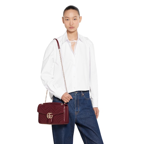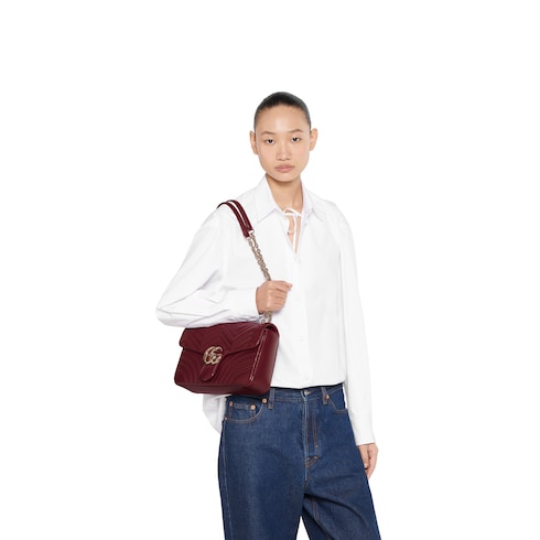 Als eine der Signature-Kollektionen des Hauses zeichnet sich die GG Marmont durch ein weiches Design aus besonders geschmeidigem Leder, einen vielseitigen Kettenriemen und das Doppel G Schmuckteil aus. Hinzu kommt ein dezentes Fach auf der Rückseite, das den mittelgroßen und großen Modellen einen funktionalen Charakter verleiht.