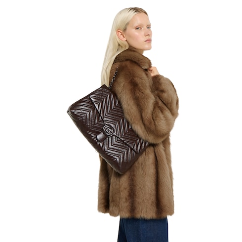 - Weiches, leichtes Matelassé-Leder in Dunkelbraun mit Chevron-Muster