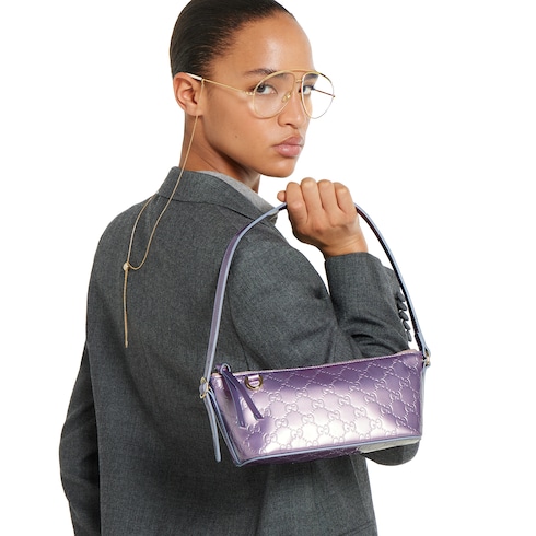 In der Herbst Winter 2025 Kollektion, diese kleine GG Emblem Schultertasche mit Reißverschluss und klaren Linien erhält durch eine kompakte Silhouette und charakteristische Details einen besonderen Akzent. Eine flache Tasche im Inneren sorgt für ein übersichtliches Innenleben, während der Schulterriemen eng anliegenden Tragekomfort bietet.