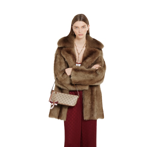 In der Herbst Winter 2025 Kollektion, diese kleine GG Emblem Schultertasche mit Reißverschluss und klaren Linien erhält durch eine kompakte Silhouette und charakteristische Details einen besonderen Akzent. Eine flache Tasche im Inneren sorgt für ein übersichtliches Innenleben, während der Schulterriemen eng anliegenden Tragekomfort bietet.
