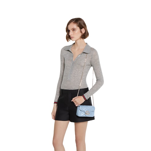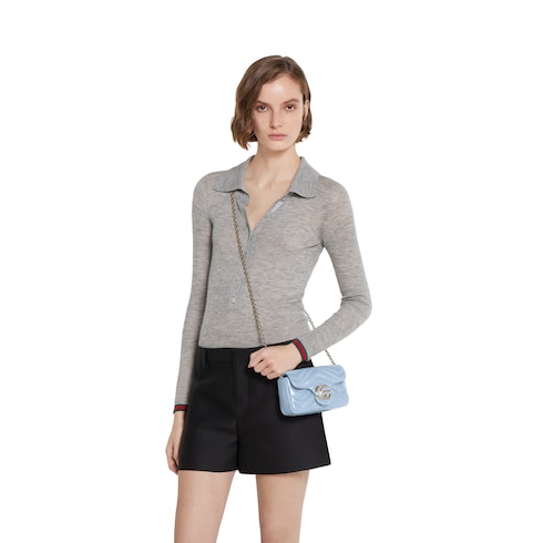 Als eine der Signature-Kollektionen des Hauses zeichnet sich die GG Marmont durch ein weiches Design aus besonders geschmeidigem Leder, einen vielseitigen Kettenriemen und das Doppel G Schmuckteil aus. Erstmals in den 1970ern präsentiert, verleiht das Logo aus den Archiven dieser Mini-Tasche einen unverkennbaren Akzent.