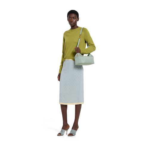 Die Gucci Vanity überführt Elemente von klassischen Kosmetiketuis in eine faszinierende Silhouette, die drei verschiedene Tragevarianten ermöglicht. Diese Tasche kann entweder über der Schulter oder – mit doppelt gefasstem Riemen – als Henkeltasche getragen werden. Dank eines zusätzlichen Riemens lässt sie sich darüber hinaus auch als Umhängetasche stylen.