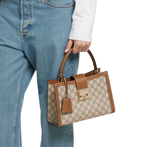 Zeitgemäße Silhouetten und vielfältige Tragevarianten kennzeichnen die Padlock Modelle aus der Pre-Fall 2025 Kollektion. Diese Henkeltasche verfügt über ein Futter, das vom charakteristischen Web des Hauses geziert wird.