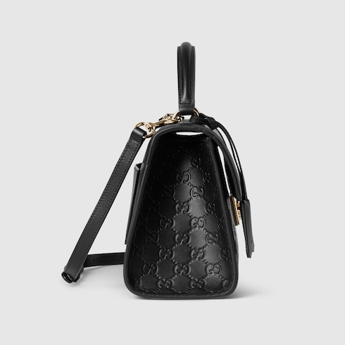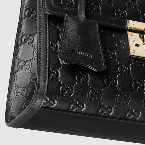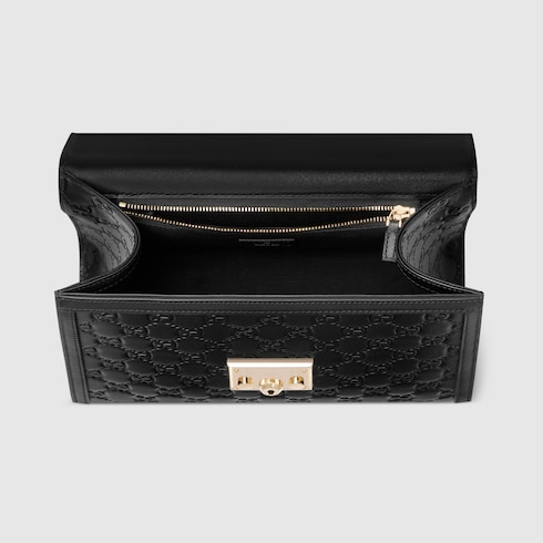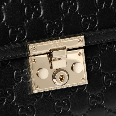 Zeitgemäße Silhouetten und vielfältige Tragevarianten kennzeichnen die Padlock Modelle aus der Herbst Winter 2025 Kollektion. Diese Henkeltasche ist aus geprägtem GG Leder gefertigt.