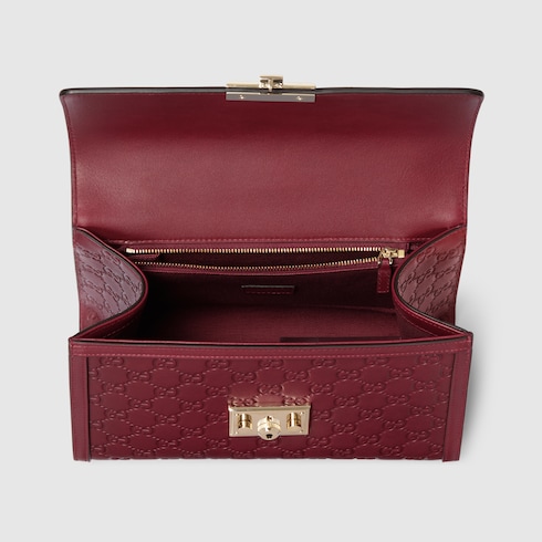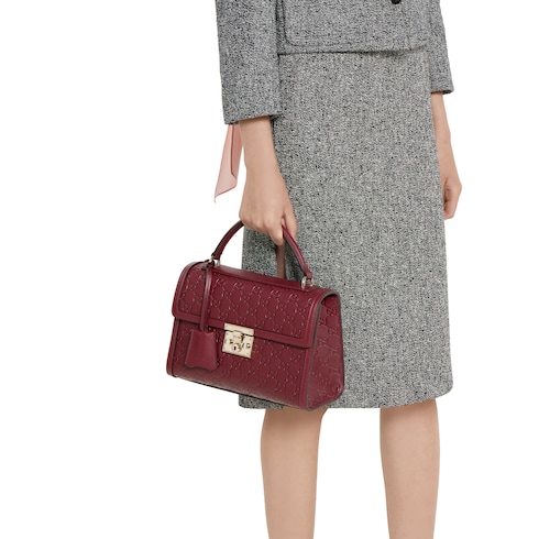 Zeitgemäße Silhouetten und vielfältige Tragevarianten kennzeichnen die Padlock Modelle aus der Herbst Winter 2025 Kollektion. Diese Henkeltasche ist aus geprägtem GG Leder gefertigt.