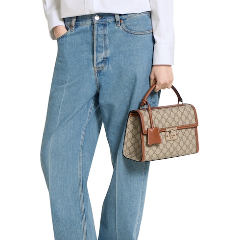 Zeitgemäße Silhouetten und vielfältige Tragevarianten kennzeichnen die Padlock Modelle aus der Pre-Fall 2025 Kollektion. Dieses Design lässt sich in der Hand oder als Umhängetasche tragen. Das Futter ist mit dem charakteristischen Web des Hauses versehen.