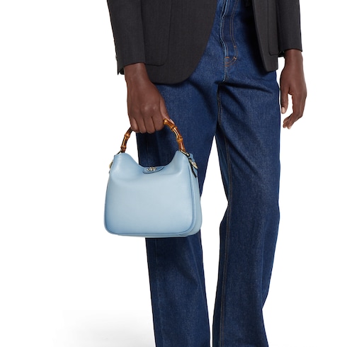 Die Gucci Diana erscheint in einem Design aus genarbtem Leder mit Farbverlauf und wird vom charakteristischen Bambusgriff des Hauses komplettiert. Das in einem frischen saisonalen Farbton gehaltene Modell lässt sich als Umhänge- oder Schultertasche tragen.