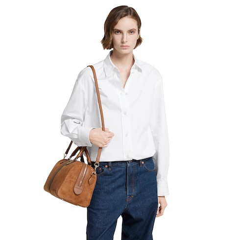 - Abnehmbarer und verstellbarer Schulterriemen aus Leder mit Henkelfall von 43 bis 49 cm; Länge: 101–115 cm