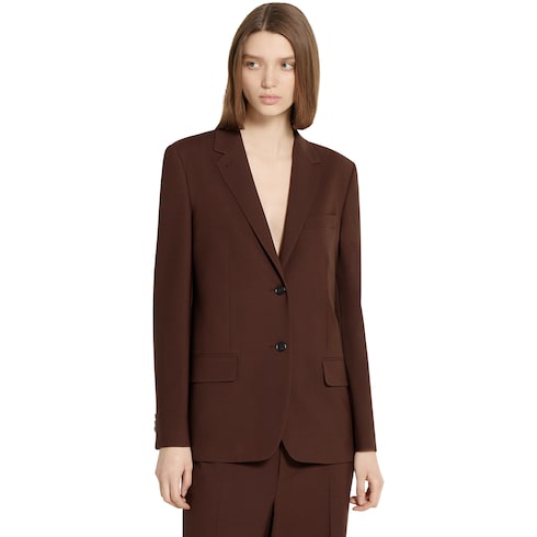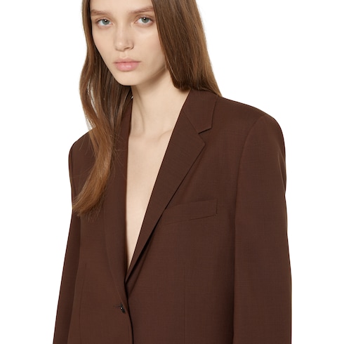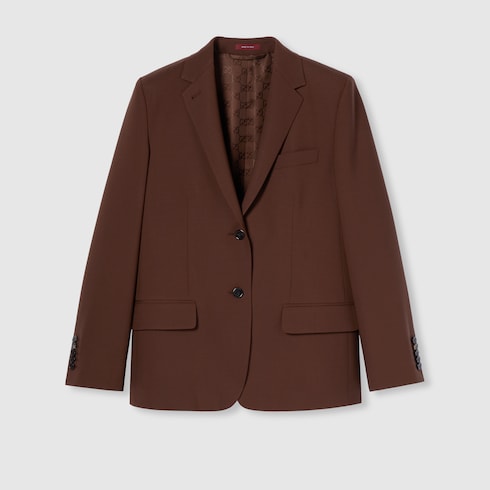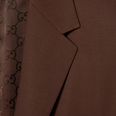 Formvollendete Designs aus edlen Materialien zeigen die meisterhafte Handwerkskunst, die die neuen Ready-To-Wear-Looks von Gucci ausmacht. Dieser zeitgemäß inszenierte Blazer aus der Pre-Fall 2025 Kollektion besteht aus leichter Stretchwolle mit einem Futter mit GG Motiv. Das Modell kann mit der passenden Hose kombiniert werden.