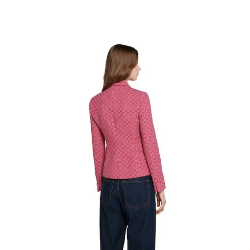 Die Mäntel, Jacken und Kleider aus der Pre-Fall 2025 Kollektion vereinen subtile Eleganz mit raffinierten Details. Diese Jacke verdankt ihr vornehm anmutendes Flair einem Design aus GG Baumwollbouclé, das von bezogenen Doppel G Knöpfen aus dem gleichen Material stilvoll abgerundet wird.