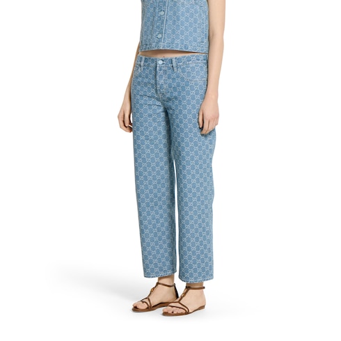 - Blauer und elfenbeinfarbener GG Denim-Jacquard mit Waschung