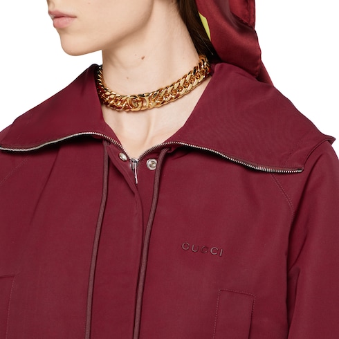 Elegante Outerwear-Looks aus wärmenden Materialien werden für die Pre-Fall 2025 Kollektion neu gedacht und erscheinen sowohl in traditionellen als auch zeitgemäßen Silhouetten. Diese zeitgemäße Jacke aus Polyester-Faille wird von funktionalen Details wie einer Kapuze und einem Kordelzug am Saum komplettiert. Ein dezentes Logo rundet das Design ab.
