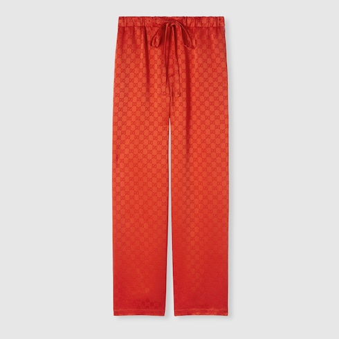 Im Rahmen der Pre-Fall 2025 Kollektion setzen Oberteile und Kleider in lebendigen Farben einen besonderen Akzent in der Ready-To-Wear-Auswahl für die Übergangszeit. Diese Hose ist aus elegantem GG Satin in leuchtendem Orange gefertigt.