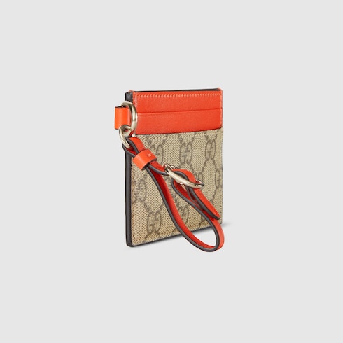 Lederdetails in lebendigen Farben verleihen der GG Emblem Kollektion unverkennbare Warmwetter-Akzente. Dieses Kartenetui ist aus beschichtetem GG Monogramm-Stoff mit kontrastierendem Lederbesatz gefertigt.