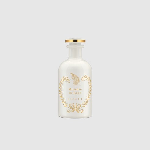 - Inspired by the first perfumery containers from antique apothecaries, the Muschio di Luce Eau de Parfum is encased in a white glass flacon, adorned with a bird of paradise.