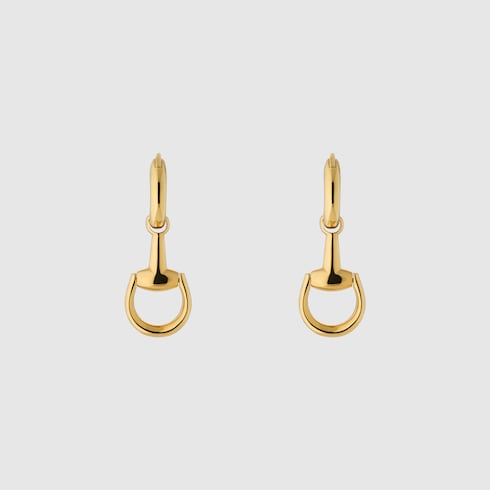 Gucci celebrates the 20th anniversary of the signature Horsebit jewelry line with classic pieces in 18k yellow gold. This pair of earrings is defined by a semi-horsebit variation of the signature detail.