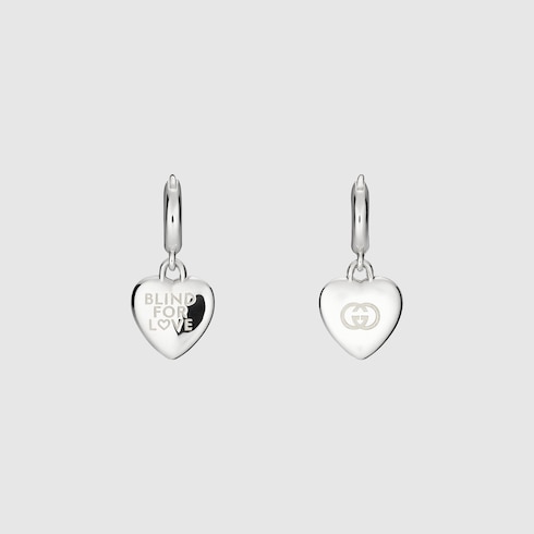 The House's silver jewelry collection continues to reinterpret emblematic motifs, such as this Blind For Love loop earrings featuring an engraving, with sumptuous materials, intricate craftsmanship, and a refined touch.