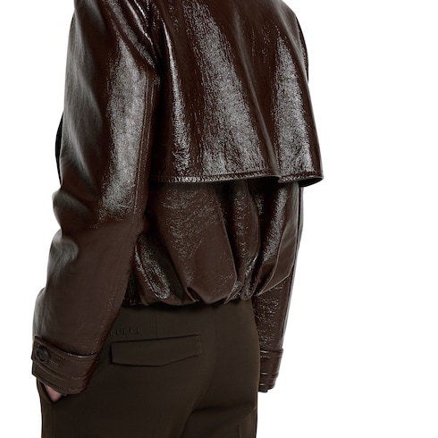 In the Fall Winter 2025 collection, different treatments and textures elevate leather in all its forms. This biker jacket reinterprets a timeless silhouette through refined construction and a button closure.