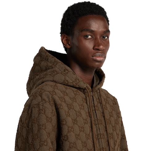 The Pre-Fall 2025 collection perfectly blends versatile textures and sophisticated detailing. Jacquard weavings and intricate embroideries evolve to reflect the changing seasons. This light padded jacket is crafted from brown GG bouclé.