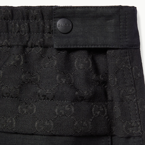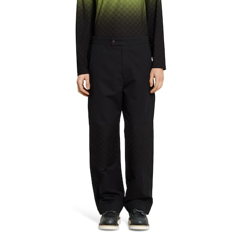 Soft, textured materials define a selection of winter wardrobe pieces, for city or alpine strolls. Crafted from black cotton ripstop, this pair of pants is enriched with GG canvas inserts.