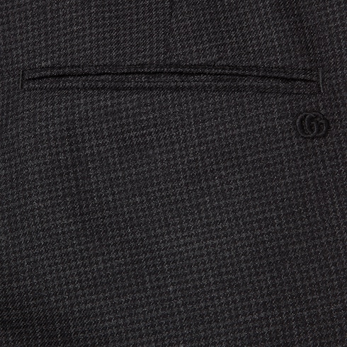 Fall shades define a selection of sartorial pieces paired with heritage details of the House. Timeless elegance meets contemporary flair with a focus on sharp tailoring and relaxed fit. Crafted from black and grey houndstooth wool, this pair of pants is enriched with a Double G embroidery.