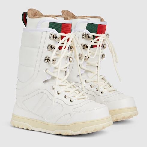 Gucci Altitude, the House's first winter sportswear collection, combines advanced performance and signature codes. This men's boot is defined by bold House codes. The green and red Web appears on the tongue and detailing, bringing a signature touch to the performance-inspired silhouette.