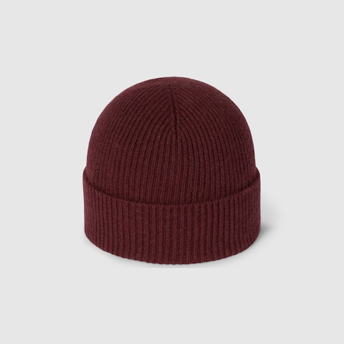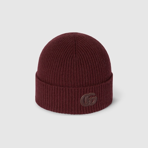 The Pre-Fall 2025 soft and silk accessories' collection animate House codes through sophisticated trimmings, logo patches and subtle embroideries. This cashmere hat reveals a tonal Double G leather patch.