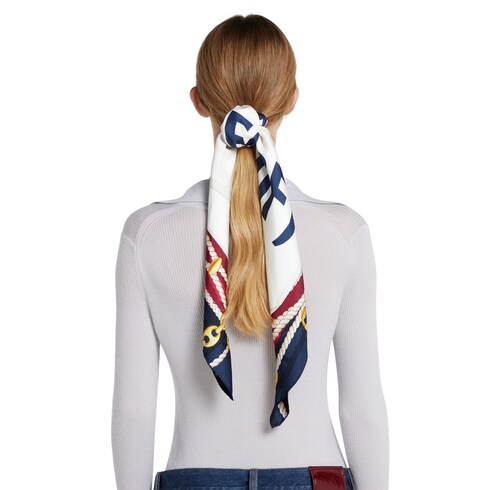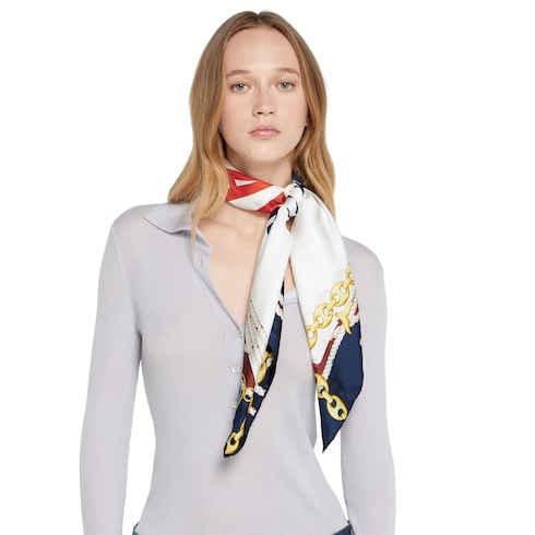 Featuring artwork by artist Sara Leghissa, whose oeuvre questions and deepens the connection to reality, this carré explores Gucci's nautical motif as part of the 90 x 90 project.