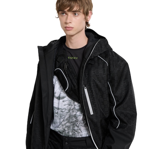 Gucci Altitude, the House's first winter sportswear collection, combines advanced performance and signature codes. Crafted from GG nylon jacquard, this belt bag is enriched with a black trim and a green and red Web detail.