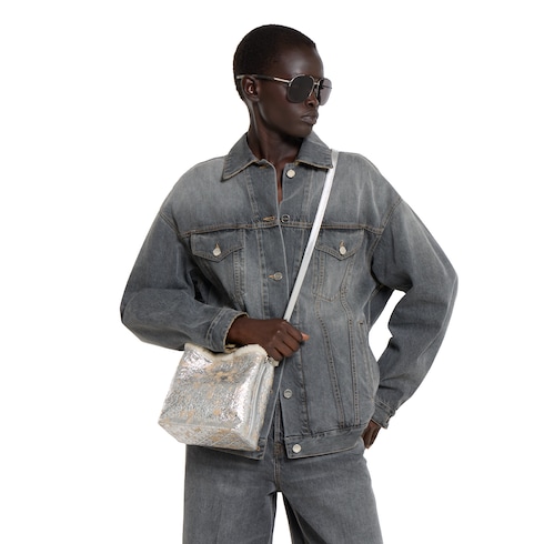 The GG Emblem collection reinterprets the House’s history of elegance and craftsmanship, introducing uniquely textured leather which imparts new light on the bucket bag silhouette, complete with shearling trim.