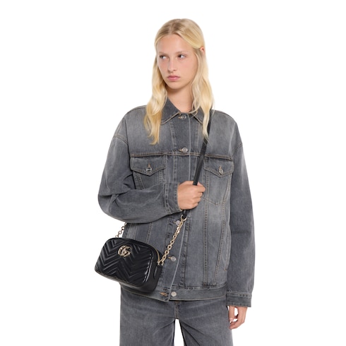 The GG Marmont, a signature collection of the House, features the emblematic Double G, a faceted chain strap, and contemporary silhouettes. The new camera bag highlights fine craftsmanship with exceptionally supple leather and intricate hardware details in light gold-toned finish.