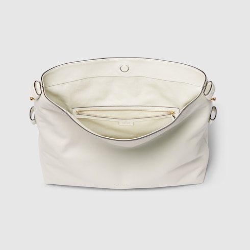 In the Fall Winter 2025 collection, crafted from soft smooth leather, the Gucci Beatrix handbag features a relaxed silhouette elevated by the signature Horsebit detail on the shoulder strap. The gold-toned hardware enhances its refined feel, while a zip pocket inside keeps essentials secure.