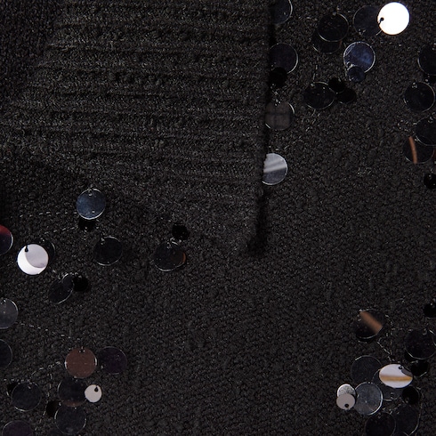 Introducing new knitwear styles, sophisticated yarn provides volume, and is further elevated through artisanal details which highlight rich textures. With a new focus on yarns, these knits can be worn alone as a standout piece, or layered to complement the Pre-Fall 2025 wardrobe. This viscose blend polo cardigan features an allover sequin embroidery.