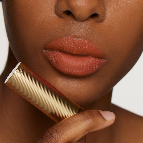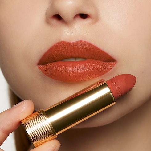 Rouge à Lèvres Mat presenta una colección de intensos tonos labiales de acabado mate de larga duración. La barra de labios, especialmente formulada con un rico pigmento y ceras fijadoras, ofrece una sensación suave y aterciopelada. Concebida por el Director Creativo Alessandro Michele, se trata de una gama de brillantes tonos inspirados en películas y personajes de la época dorada de Hollywood. La atrevida paleta de colores evoca la actitud excéntrica y de espíritu libre de las colecciones de la Firma, una forma de autoexpresión personal ilimitada y sin barreras. Cada barra de labios viene en un precioso envase dorado con un diseño grabado.