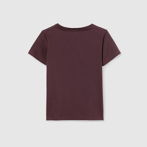 La colección infantil Pre-Fall 2025 exhibe una amplia gama de motivos populares, entre los que destacan los distintivos detalles de logotipo. Esta camiseta infantil de ajuste clásico presenta un estampado Gucci en contraste.