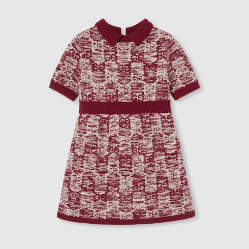 Desde bordados sutiles hasta estampados integrales, los motivos exclusivos siguen realzando la selección infantil Pre-Fall 2025. Este vestido infantil de jacquard de lana con GG evoca el inconfundible motivo de monograma de la Firma.