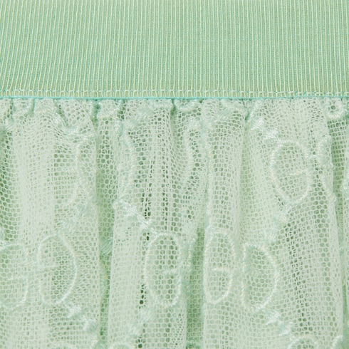 Desde bordados sutiles hasta estampados integrales, los motivos exclusivos siguen realzando la selección infantil Pre-Fall 2025. Esta falda infantil de tul con GG cuenta con una cintura elástica y un cómodo forro de mezcla de seda.