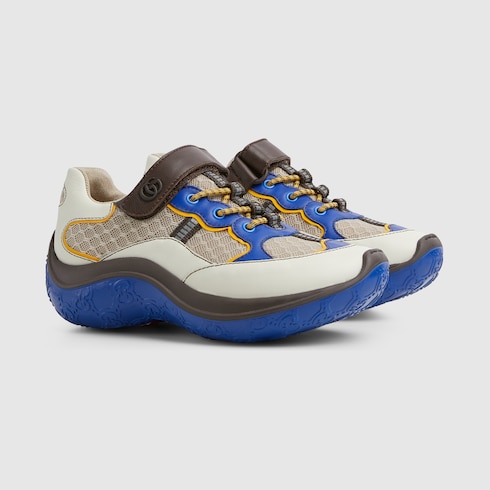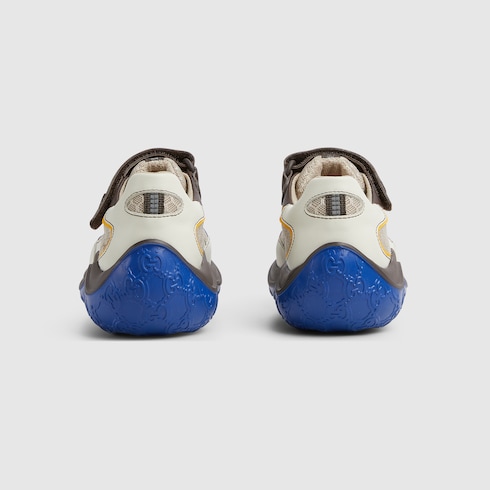 La colección infantil Pre-Fall 2025 exhibe una amplia gama de motivos populares, entre los que destacan los distintivos detalles de logotipo. Estas zapatillas infantiles se han fabricado en piel blanca y red beige, y se realzan con una Doble G y una suela de goma con patrón GG.