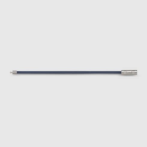 Esta pulsera de piel exhibe una forma cilíndrica y un detalle de paladio plateado en el centro con el exclusivo motivo GG grabado. El cierre de botón a presión permite llevar el accesorio cómodamente.