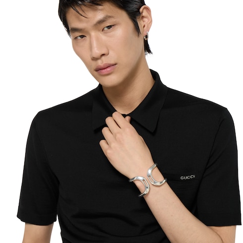La nueva línea Gucci Staffa se inspira en las herraduras para reinterpretar con un estilo contemporáneo clásicos ecuestres de la Firma. Los delicados collares de cadena y pulseras exhiben este motivo como un colgante o detalle. Este emblema también aporta un toque innovador a anillos y pendientes.