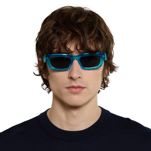 - Patillas de acetato en azul claro transparente brillante con motivo GG integral
