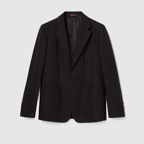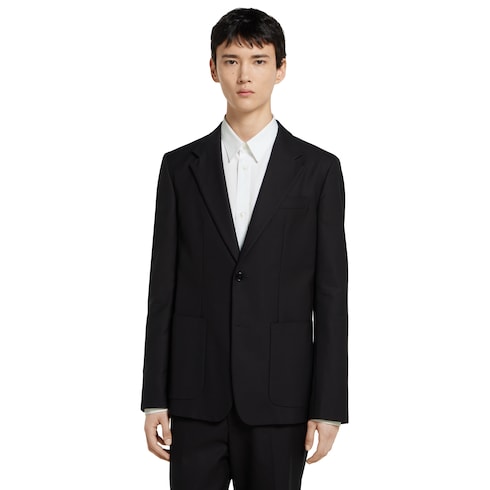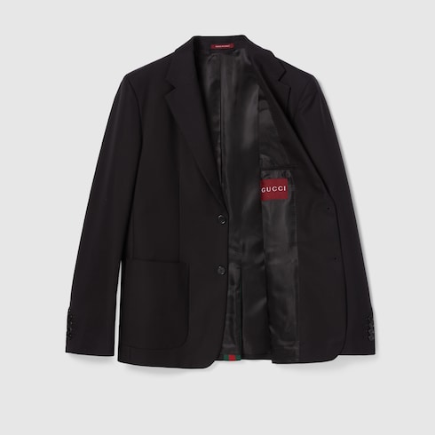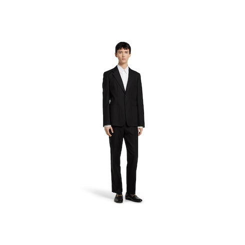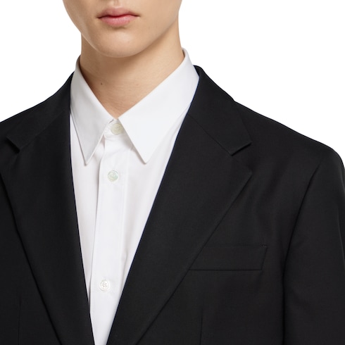 La moda formal inspirada en el mundo del ocio trae nuevos diseños y cortes a la colección Pre-Fall 2025. Los elementos exclusivos se combinan con detalles refinados. Esta chaqueta de botonadura sencilla se ha confeccionado en lona de viscosa y algodón con un detalle de tribanda Web en la parte posterior.