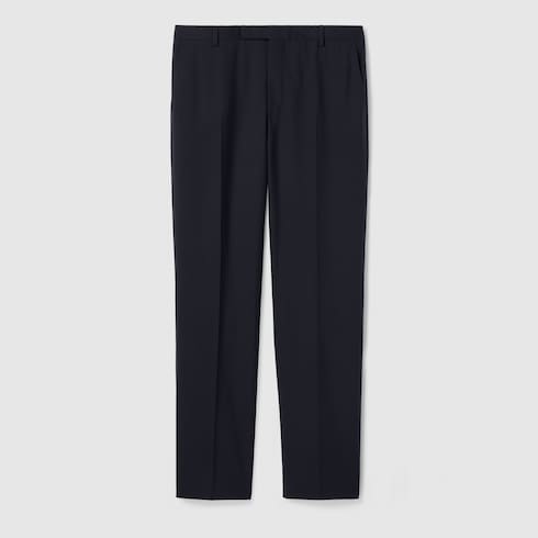 La moda formal inspirada en el mundo del ocio trae nuevos diseños y cortes a la colección Pre-Fall 2025. Los elementos exclusivos se combinan con detalles refinados. This suit appears in black wool. Este traje se ha confeccionado en lana azul oscuro.